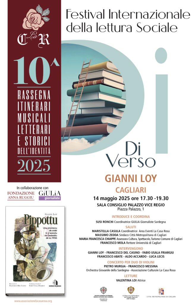 La rassegna è stata inaugurata il 14 maggio a Cagliari, nella Sala del Consiglio del Palazzo Vice Regio, con un evento di grande rilievo storico e culturale. Protagonista della serata è stata la presentazione del romanzo breve di Gianni Loy “Pippottu. Unu piccioccu de crobi ins’avolotu de Casteddu de su 1906”, dedicato ai moti popolari che il 14 maggio 1906 scossero la città, in un clima di profondo disagio sociale e protesta contro le istituzioni dell’epoca.
