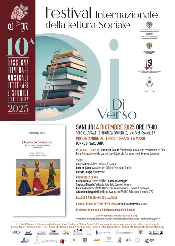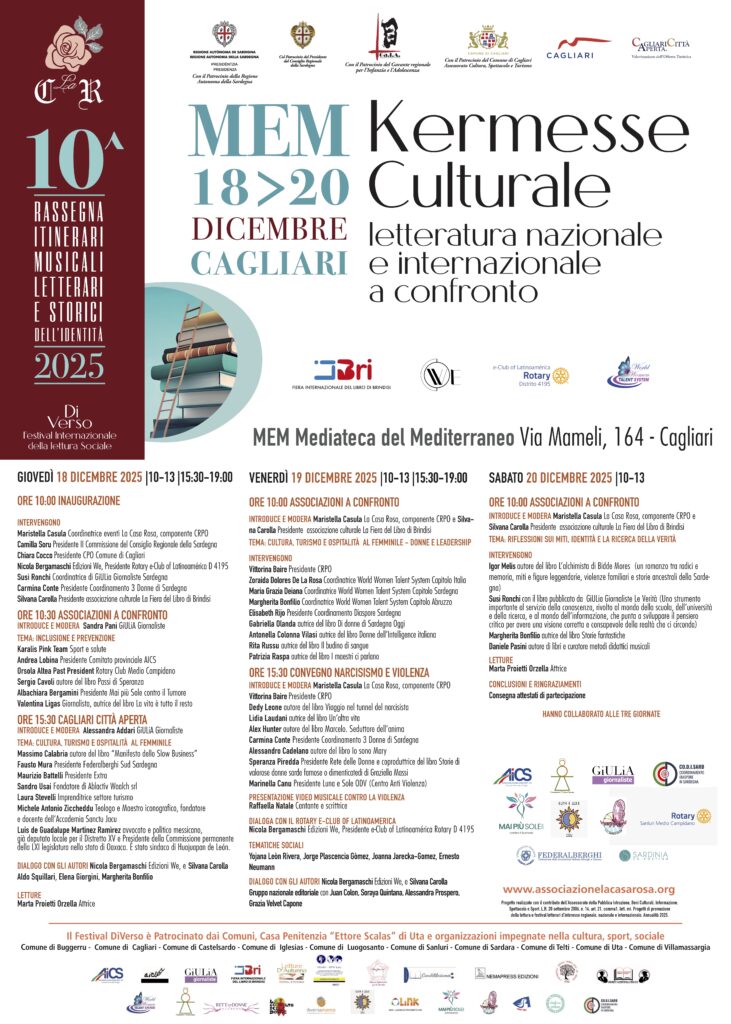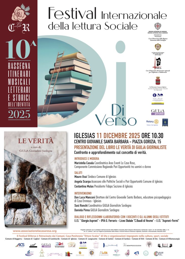Il progetto, coordinato dalla direzione artistica della Presidente dell’Associazione Culturale La Casa Rosa, Maristella Casula, si avvale della collaborazione di numerosi partners, tra cui GiUlia Giornaliste Sardegna, che anche quest’anno si impegna a far emergere tematiche sociali e culturali grazie alla presenza di relatorə, scrittorə emergenti e musicistə di alto livello.